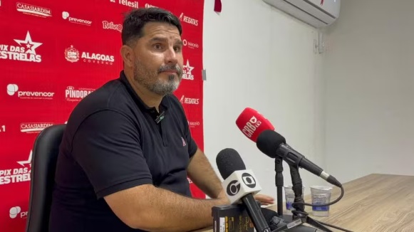 Técnico do CRB, Eduardo Barroca durante coletiva de imprensa — Foto: Denison Roma/Ge